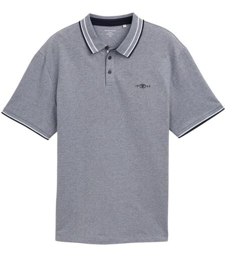 Tom Tailor + Polo Coupe Regular Fit Tom Tailor + En Coton Bleu Chiné Avec Des Liserés Bleu 4XL