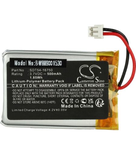 vhbw - the clever way - Batterie de rechange de haute qualité avec une grande autonomie et compatible avec votre collier de dressage (vous trouverez ci-dessous tous les modèles correspondants) - La batterie peut être chargée avec le chargeur standard ou un chargeur compatible - Nos batteries répondent à toutes les normes de sécurité actuelles CONTENU DE LIVRAISON : - 1x batterie DONNÉES TECHNIQUES : - Technologie : Li-polymère - Capacité : 500 mAh - Tension : 3,7 V - Énergie nominale : 1,85 Wh - Nombre de cellules : 1 COMPATIBLE AVEC : - SportDog Sporttrainer SD-575 Black Edition Collar Pour garantir la compatibilité, veuillez vérifier si votre batterie utilisée actuellement est répertoriée. REMPLACEMENT POUR : - SportDog SDT54-16750 vhbw - Accessoires et pièces de rechange de haute qualité pour prolonger la durée de vie de vos appareils électriques. ...