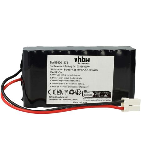 vhbw - the clever way - Batterie de rechange de haute qualité avec une grande autonomie et compatible avec votre outil de jardinage (vous trouverez ci-dessous tous les modèles correspondants) - La batterie peut être chargée avec le chargeur standard ou un chargeur compatible - Nos batteries répondent à toutes les normes de sécurité actuelles CONTENU DE LIVRAISON : - 1x batterie DONNÉES TECHNIQUES : - Technologie : Li-ion - sans effet mémoire - Capacité : 5000 mAh - Tension : 25,9 V - Énergie nominale : 129,5 Wh - Hauteur : environ 2,6 mm - Nombre de cellules : 7 - Dimensions (L x l x H): 13 x 6,6 x 2,6 cm - Protection contre les courts-circuits, la surcharge et la surchauffe COMPATIBLE AVEC : - Wiper Q350 - Wiper Climber - Wiper i130s Pour garantir la compatibilité, veuillez vérifier si votre batterie utilisée actuellement est répertoriée. REMPLACEMENT POUR : - 050Z36600A, 050Z38600A, 075Z60900A vhbw - Accessoires et pièces de rechange de haute qualité pour prolonger la durée de vie de vos appareils électriques. ...