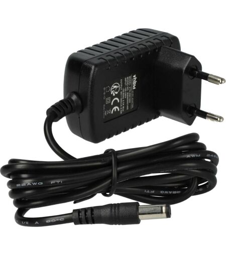 vhbw - the clever way Bloc d'alimentation compatible pour votre pédale d'overdrive L'adaptateur au secteur électrique de la marque vhbw fournit une alimentation en courant fiable pour votre pédale d'effet. La prise euro coudée à 90° vous permet de connecter votre appareil confortablement au secteur. Cet adaptateur est parfait en tant que rechange pour votre câble actuel ou pour une alimentation supplémentaire. La longueur totale de 1,45 cm permet une grande flexibilité même avec des prises difficiles d'accès. CONTENU DE LIVRAISON : - 1x adaptateur secteur DONNÉES TECHNIQUES : - Entrée AC : 100-240 V / 0,5 A Max / 100-240 V - Sortie DC : 9 V / 0,5 - 1 A - Puissance : 4,5 W - Fréquence : 50-60 Hz - Connexions : 1x prise Euro (coudée à 90), 1x connecteur (rond, droit) - Diamètre extérieur (prise) : 5,5 mm - Diamètre intérieur (prise) : 2,1 mm - Profondeur de fiche : 10,8 mm - Polarité : pôle négatif à l'intérieur - Longueur du câble : 1,45 cm - Couleur : noir - Poids : 76 g REMPLACEMENT ...