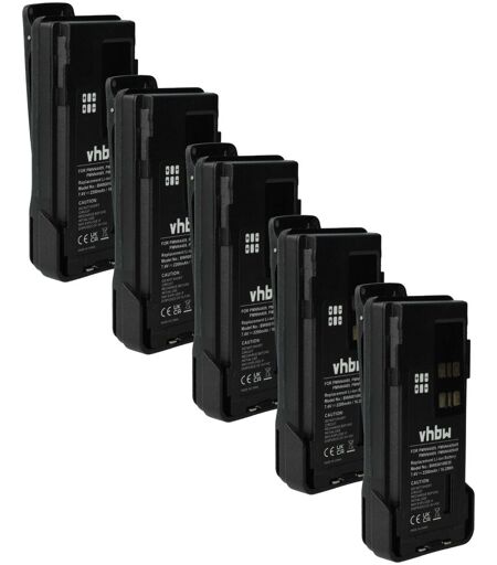 vhbw - the clever way - Batterie de rechange de haute qualité avec une grande autonomie et compatible avec votre radio talkie-walkie (vous trouverez ci-dessous tous les modèles correspondants) - La batterie peut être chargée avec le chargeur standard ou un chargeur compatible - Nos batteries répondent à toutes les normes de sécurité actuelles CONTENU DE LIVRAISON : - 5x batterie avec clip de ceinture DONNÉES TECHNIQUES : - Technologie : Li-ion - sans effet mémoire - Capacité : 2200 mAh - Tension : 7,4 V - Énergie nominale : 16,28 Wh - Couleur : noir - Nombre de cellules : 2 COMPATIBLE AVEC Motorola P8608, GP328D, P8668i, TRBO, P8660 Pour garantir la compatibilité, veuillez vérifier si votre batterie utilisée actuellement est répertoriée. REMPLACEMENT POUR : - PMNN4406, PMNN4406BR, PMNN4409, PMNN4409AR, PMNN4409BR, PMNN4412, PMNN4448, PMNN4489A, PMNN4490, PMNN4490A, PMNN4490B, PMNN4491, PMNN4491B, PMNN4493, PMNN4543, PMNN4543A, PMNN4544, PMNN4544A vhbw - Accessoires et pièces de rechange de haute qualité pour prolonger la durée de vie de vos appareils électriques. ...