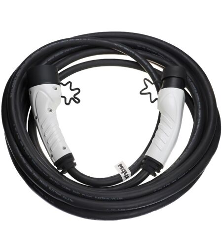 vhbw - the clever way Câble de recharge de haute qualité pour votre voiture électrique Ce câble de recharge de la marque vhbw vous permet de recharger votre voiture électrique ou votre véhicule hybride rechargeable rapidement et sans problème sur une station de recharge. Cela permet de faire le plein d'électricité du véhicule électrique/hybride rechargeable loin de la station de recharge domestique, sans devoir brancher et débrancher sans cesse le câble. Les capuchons en caoutchouc protègent de manière fiable les connecteurs et les contacts de recharge contre les salissures. Remarque : Veuillez vous assurer que votre véhicule électrique est équipé de la dernière version du logiciel du fabricant. Pour les autres versions, des problèmes peuvent survenir lors du chargement avec des câbles de chargement de plus de 5 m de long. Attention : le câble de recharge n'est pas une rallonge et ne convient pas pour le courant domestique 220-240 V. CONTENU DE LIVRAISON : - 1x câble de recharge DONNÉES TECHNIQUES : - Connectivité : 2x fiches type 2 - Longueur du câble : 10 m - Intensité du courant : maximum 32 A (triphasé) - Puissance de charge : jusqu'à 22 kW - Tension d'entrée AC : 415 V - Matériau : plastique / métal - Couleur : noir / blanc - Poids : 5 kg - norme IEC 62196-2 - IP 54 pour une utilisation en intérieur et en extérieur - Avec capuchons de protection en caoutchouc - Sans halogène, résistant à l'huile et ignifugé - Résistant à la corrosion COMPATIBLE AVEC Toyota Prius PHEV, Proace City Electric vhbw - Accessoires et pièces de rechange de haute qualité pour prolonger la durée de vie de vos appareils électriques. ...