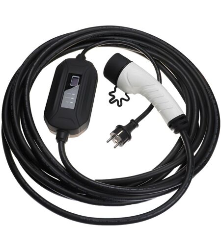vhbw - the clever way Câble de recharge de haute qualité pour votre voiture électrique Ce câble de recharge de la marque vhbw vous permet de recharger votre voiture électrique ou votre véhicule hybride rechargeable, sur un système de recharge EV/PHEV avec une prise standard de 230 V (prise euro à 2 pôles de type F). Grâce à l'écran LCD intégré avec affichage de l'état de charge, vous avez toujours sous les yeux toutes les données de recharge pertinentes et les paramètres les plus importants. CONTENU DE LIVRAISON : - 1x câble de recharge DONNÉES TECHNIQUES : - Connectivité : 1x fiche type 2, 1x fiche euro (type F) - Longueur du câble : 10 m - Intensité du courant : maximum 16 A (monophasé) - Puissance de charge : jusqu'à 3,5 kW - Tension d'entrée AC : 250 V - Matériau : plastique / métal - Couleur : noir / blanc - Poids : 3 kg - prise de charge type 2 selon la norme IEC 62196-2 - Étanche à l'eau selon IP 55 - Avec capuchon de protection en caoutchouc - Avec affichage LCD de l'état de charge - Protection contre la surchauffe, la surtension et la sous-tension COMPATIBLE AVEC Ora Funky Cat vhbw - Accessoires et pièces de rechange de haute qualité pour prolonger la durée de vie de vos appareils électriques. ...