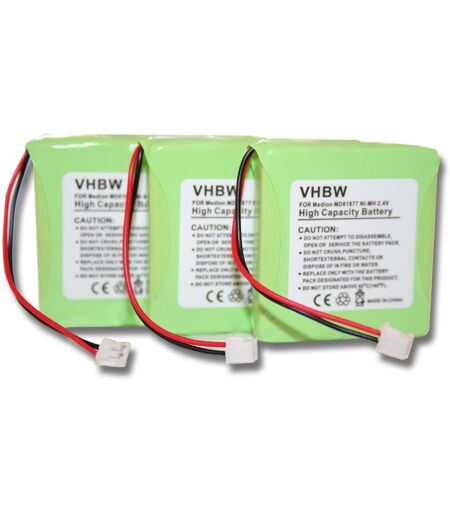 vhbw 3x Batterie compatible avec teXet TX-D7750, TX-D740 téléphone fixe sans fil (600mAh, 2,4V, NiMH)