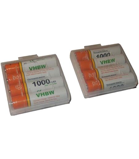 vhbw 8x Batterie AAA micro compatible avec Angelcare AC423D, AC701 moniteur bébé, babyphone (1000mAh, 1,2V, NiMH)