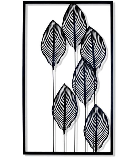Spetebo - Image murale en métal feuilles en noir - 60 x 35 cm - image décorative à suspendre - image de décoration murale à suspendre moderne