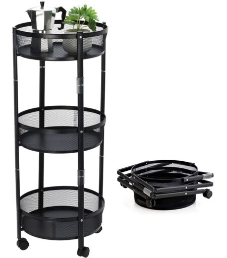 SPETEBO Desserte en métal noire ronde avec 3 étagères pliables - 88 x 37 cm - Desserte de cuisine pliable avec 3 paniers de rangement