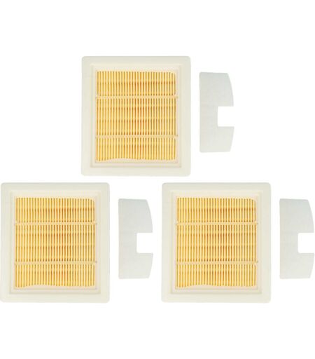vhbw - the clever way Set de filtres de haute qualité pour votre aspirateur à cendres Ce set de filtres de rechange de 6 pièces de la marque vhbw vous permet de changer simplement et rapidement les filtres de votre aspirateur afin de conserver une haute performance de filtration et d'aspiration. Attention : Avant de les aspirer, assurez-vous que les cendres soient retombées à une température inférieure à 40°C. Le set est composé de : - 3x FILTRES HEPA - Filtrent les particules ultra-fines en suspension - Améliorent l'efficacité de nettoyage de votre aspirateur robot et réduisent les odeurs - Dimensions (L x l x H) : 12,8 x 14 x 5,8 cm - Couleur : blanc / jaune - 3x FILTRES PRÉ-MOTEUR - Capturent les particules grossières de saletés, avant que l'air ne soit dirigé dans le filtre principal - Protègent le moteur des impuretés - Matériau : toison - Couleur : blanc COMPATIBLE AVEC Cleancraft flexCAT 16 H REMPLACEMENT POUR : - 6924498208110, 7010250 vhbw - Accessoires et pièces de rechange ...