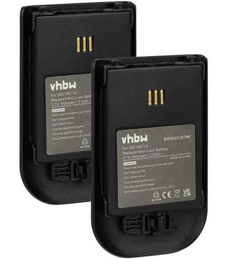vhbw 2x Batterie compatible avec Mitel DT690, DT692 téléphone fixe sans fil (930mAh, 3,7V, Li-ion)