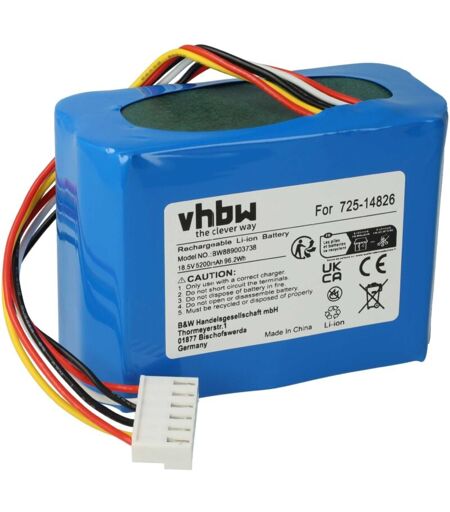 vhbw - the clever way - Batterie de rechange de haute qualité avec une grande autonomie et compatible avec votre outil de jardinage (vous trouverez ci-dessous tous les modèles correspondants) - La batterie peut être chargée avec le chargeur standard ou un chargeur compatible - Nos batteries répondent à toutes les normes de sécurité actuelles CONTENU DE LIVRAISON : - 1x batterie DONNÉES TECHNIQUES : - Technologie : Li-ion - sans effet mémoire - Capacité : 5200 mAh - Tension : 18,5 V - Énergie nominale : 96,2 Wh - Nombre de cellules : 8 - Poids : 499 g - Longueur du câble : 17 cm - Nombre de Pins : 6 - Dimensions (L x l x H): 9,3 x 7,0 x 4,3 cm COMPATIBLE AVEC Robomow 1000 PRO, 2000 PRO, RK, 1000, 2000 Pour garantir la compatibilité, veuillez vérifier si votre batterie utilisée actuellement est répertoriée. REMPLACEMENT POUR : - 725-14826, 725-14827, 725-18426, 753-11203, 753-11204, 725-14826, 725-14827, 725-18426, 753-11203, 753-11204, 725-14826 725-14827, 725-18426, 753-11203, ...