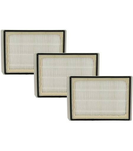 vhbw - the clever way Set de 3x filtre HEPA d'évacuation pour votre aspirateur, robot aspirateur ou nettoyeur vapeur - Gardez la puissance d'aspiration en changeant régulièrement votre filtre - Filtre les particules ultra-fines de l'air d'échappement Les filtres HEPA puissant de la marque vhbw sont dotés d'une surface filtrante plus grande que les filtres standards et garantissent un air intérieur sans poussière et sans poil d'animaux. Ce type de filtre est idéal pour les personnes souffrant d'allergies. CONTENU DE LIVRAISON : - 3x filtres d'aspirateur DONNÉES TECHNIQUES : - Dimensions (L x l x H) : 15,3 x 10,7 x 2,1 cm - Matériau : caoutchouc / plastique / microfibre - Poids par filtre : 55 g - Forme : rectangulaire - Couleur : gris / noir / blanc COMPATIBLE AVEC Bosch BSF 1201/03, BSD 3300/06, BSF1400/04 REMPLACEMENT POUR : - 00460475, 00480727 vhbw - Accessoires et pièces de rechange de haute qualité pour prolonger la durée de vie de vos appareils électriques. ...