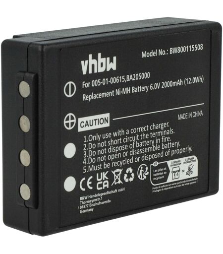 vhbw - the clever way - Batterie de rechange de haute qualité avec une grande autonomie et compatible avec votre telécommande industrielle (vous trouverez ci-dessous tous les modèles correspondants) - La batterie peut être chargée avec le chargeur standard ou un chargeur compatible - Nos batteries répondent à toutes les normes de sécurité actuelles CONTENU DE LIVRAISON : - 1x batterie DONNÉES TECHNIQUES : - Technologie : NiMH - Capacité : 2000 mAh - Tension : 6 V - Énergie nominale : 12 Wh - Couleur : noir - Hauteur : environ 2,4 mm - Nombre de cellules : 5 - Poids : 166 g Pour garantir la compatibilité, veuillez vérifier si votre batterie utilisée actuellement est répertoriée. REMPLACEMENT POUR : - HBC BA209000, BA209061, BA209060, BA209001 vhbw - Accessoires et pièces de rechange de haute qualité pour prolonger la durée de vie de vos appareils électriques. ...