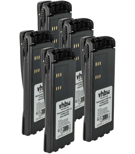 vhbw 5x Batterie compatible avec Motorola GP338, GP328, GP329, GP330, GP320 radio talkie-walkie (1800mAh, 7,2V, Li-ion) - avec clip de ceinture