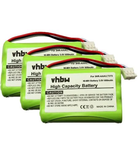 vhbw 3x Batterie remplacement pour Bang & Olufsen 3HR-AAAU pour téléphone fixe sans fil (800mAh, 3,6V, NiMH)