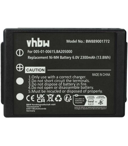 vhbw - the clever way - Batterie de rechange de haute qualité avec une grande autonomie et compatible avec votre telécommande industrielle (vous trouverez ci-dessous tous les modèles correspondants) - La batterie peut être chargée avec le chargeur standard ou un chargeur compatible - Nos batteries répondent à toutes les normes de sécurité actuelles CONTENU DE LIVRAISON : - 1x batterie DONNÉES TECHNIQUES : - Technologie : NiMH - Capacité : 2300 mAh - Tension : 6 V - Énergie nominale : 13,8 Wh - Couleur : noir - Hauteur : environ 2,4 mm - Nombre de cellules : 5 - Poids : 171 g Pour garantir la compatibilité, veuillez vérifier si votre batterie utilisée actuellement est répertoriée. REMPLACEMENT POUR : - HBC PM237745002, BA209062, BA225031 vhbw - Accessoires et pièces de rechange de haute qualité pour prolonger la durée de vie de vos appareils électriques. ...