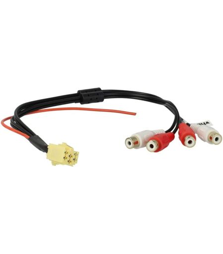 vhbw - the clever way Câble adaptateur sur mesure pour autoradio avec connecteur ISO Ce câle adaptateur pratique de la marque vhbw vous permet de connecter votre autoradio avec connecteur standard ISO à votre voiture sans effort. Ce câble permet de connecter un autoradio avec sortie préamplificateur mini-ISO directement à un amplificateur via un câble RCA. Toutes les fonctions de la radio sont conservées avec ce connecteur. CONTENU DE LIVRAISON : - 1x adaptateur autoradio ISO DONNÉES TECHNIQUES : - Connexions : connecteur Mini ISO-Pin vers 4x ports RCA, 1x câble remote (bleu) - Poids : 36 g COMPATIBLE AVEC : - Seat Alana - Seat Aura - Seat Cordoba - Seat Elba - Seat Highline - Seat Scala - Seat Sound II - Seat Toledo - Seat Ibiza vhbw - Accessoires et pièces de rechange de haute qualité pour prolonger la durée de vie de vos appareils électriques. ...