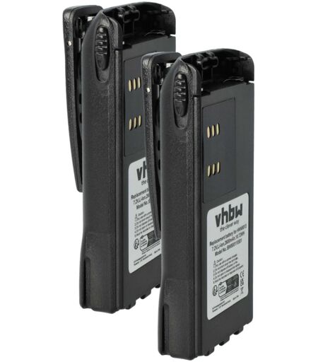 vhbw - the clever way - Batterie de rechange de haute qualité avec une grande autonomie et compatible avec votre radio talkie-walkie (vous trouverez ci-dessous tous les modèles correspondants) - La batterie peut être chargée avec le chargeur standard ou un chargeur compatible - Nos batteries répondent à toutes les normes de sécurité actuelles CONTENU DE LIVRAISON : - 2x batterie DONNÉES TECHNIQUES : - Technologie : Li-ion - sans effet mémoire - Capacité : 2600 mAh - Tension : 7,4 V - Énergie nominale : 19,24 Wh - Couleur : noir - Nombre de cellules : 2 COMPATIBLE AVEC Motorola MTX850.LS, MTX8250LS, MTX850, MTX8250, MTX8250.LS, MTX8250-LS Pour garantir la compatibilité, veuillez vérifier si votre batterie utilisée actuellement est répertoriée. REMPLACEMENT POUR : - HMNN4151, HMNN4154, HMNN4158, HMNN4159, HNN4001, HNN4003, HNN9008, HNN9008A, HNN9008AR, HNN9009, HNN9009A, HNN9009AR, HNN9010A, HNN9010AR, HNN9011BR, HNN9011R, HNN9012BR, HNN9012R, HNN9013A, HNN9013B, PMNN4045, PMNN4157, PMNN4157AR, PMNN4158, PMNN4158AR, PMNN4159AR, WPNN4045AR, WPNN4045R vhbw - Accessoires et pièces de rechange de haute qualité pour prolonger la durée de vie de vos appareils électriques. ...
