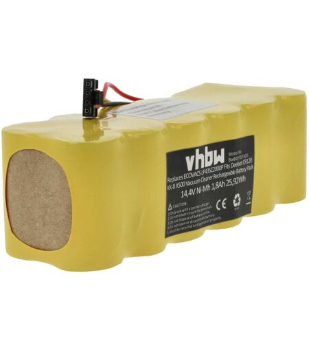 vhbw - the clever way - Batterie de rechange de haute qualité et compatible avec une grande autonomie et compatible avec votre aspirateur robot ou aspirateur robot ainsi qu'appareil de nettoyage (vous trouverez ci-dessous tous les modèles correspondants) - La batterie peut être chargée avec le chargeur standard ou un chargeur compatible - Nos batteries répondent à toutes les normes de sécurité actuelles Pour répandre une odeur fraîche avec votre robot aspirateur ou votre aspirateur, vous pouvez consulter nos offres de cartouches de parfum. CONTENU DE LIVRAISON : - 1x batterie DONNÉES TECHNIQUES : - Technologie : NiMH - Capacité : 1800 mAh - Tension : 14,4 V - Énergie nominale : 25,92 Wh - Nombre de cellules : 12 - Poids : 471 g - Nombre de Pins : 4 - Dimensions (L x l x H): 13,6 x 4,6 x 4,5 cm - Longueur du câble : 8 cm COMPATIBLE AVEC Sichler PCR-2000, NC-5725-919, PCR-3550UV Pour garantir la compatibilité, veuillez vérifier si votre batterie utilisée actuellement est répertoriée. REMPLACEMENT POUR : - AT5186005100, LP43SC2000P vhbw - Accessoires et pièces de rechange de haute qualité pour prolonger la durée de vie de vos appareils électriques. ...