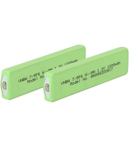 vhbw - the clever way - Cellule de batterie de haute qualité et compatible avec une grande autonomie et compatible avec votre lecteur de minidisques ou baladeur cd - Nos batteries répondent à toutes les normes de sécurité actuelles CONTENU DE LIVRAISON : - 2x cellule de batterie DONNÉES TECHNIQUES : - Technologie : NiMH - Capacité : 1100 mAh - Tension : 1,2 V - Énergie nominale : 1,32 Wh - Couleur : vert - Poids : 26 g - Température de chargement : 0°C - 60°C - Température de décharge : -20 - 60°C - Forme de la batterie : cellule prismatique - Pôle + : augmente (boûton supérieur) - Type : 7/5F6 Pour garantir la compatibilité, veuillez vérifier si votre batterie utilisée actuellement est répertoriée. REMPLACEMENT POUR : - Sanyo KF-A650, HF-A1U ...