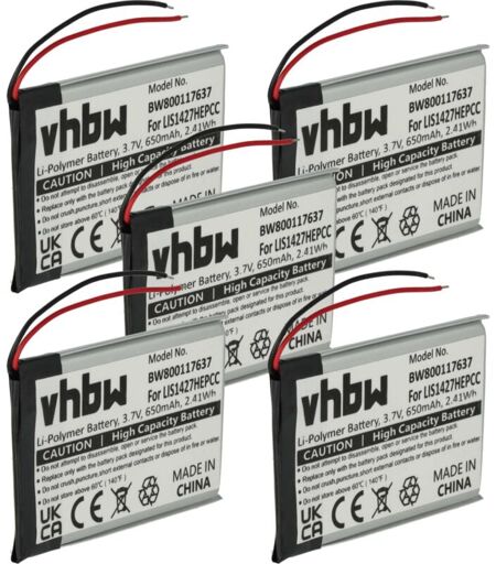 vhbw - the clever way - Batterie de rechange de haute qualité avec une grande autonomie et compatible avec votre casque audi ou écouteurs sans fil (vous trouverez ci-dessous tous les modèles correspondants) - La batterie peut être chargée avec le chargeur standard ou un chargeur compatible - Nos batteries répondent à toutes les normes de sécurité actuelles CONTENU DE LIVRAISON : - 5x batterie DONNÉES TECHNIQUES : - Technologie : Li-polymère - Capacité : 650 mAh - Tension : 3,7 V - Énergie nominale : 2,41 Wh - Dimensions (L x l x H) : 5 x 3,4 x 0,4 cm - Nombre de cellules : 1 - Poids : 14 g Pour garantir la compatibilité, veuillez vérifier si votre batterie utilisée actuellement est répertoriée. REMPLACEMENT POUR : - Plantronics PR-423350 vhbw - Accessoires et pièces de rechange de haute qualité pour prolonger la durée de vie de vos appareils électriques. ...