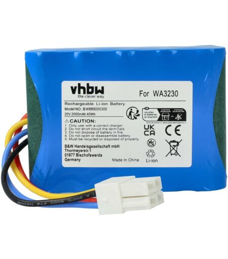 vhbw - the clever way - Batterie de rechange de haute qualité avec une grande autonomie et compatible avec votre outil de jardinage (vous trouverez ci-dessous tous les modèles correspondants) - La batterie peut être chargée avec le chargeur standard ou un chargeur compatible - Nos batteries répondent à toutes les normes de sécurité actuelles CONTENU DE LIVRAISON : - 1x batterie DONNÉES TECHNIQUES : - Technologie : Li-ion - sans effet mémoire - Capacité : 2000 mAh - Tension : 20 V - Énergie nominale : 40 Wh - Nombre de cellules : 5 - Poids : 246 g - Dimensions (L x l x H): 9,4 x 6,9 x 2,4 cm - Protection contre les courts-circuits, la surcharge et la surchauffe - Fiches : 1x prise VL 4 pôles, 1x VLP-04VJST Pour garantir la compatibilité, veuillez vérifier si votre batterie utilisée actuellement est répertoriée. REMPLACEMENT POUR : - Sunseeker LBF2025 vhbw - Accessoires et pièces de rechange de haute qualité pour prolonger la durée de vie de vos appareils électriques. ...
