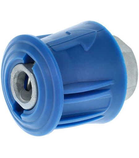 vhbw - the clever way Adaptateur de haute qualité pour votre nettoyeur haute pression Cet adaptateur de la marque vhbw vous permet de connecter un tuyau haute pression avec raccord Quick Connect à un nettoyeur haute pression avec filetage M22. L'adaptateur peut également être utilisé pour monter un pistolet haute pression avec un raccord fileté M22 sur le tuyau. CONTENU DE LIVRAISON : - 1x adaptateur raccord Quick Connect vers filetage M22 DONNÉES TECHNIQUES : - Connexions : entrée Quick Connect, filetage intérieur M22 - Dimensions (L x l x H) : 5,3 x 4,6 x 4,6 cm - Matériau : plastique / métal - Couleur : bleu - Poids : 60 g COMPATIBLE AVEC Nilfisk Core 125-5 EU - et autres appareils compatibles avec un raccord fileté M22 vhbw - Accessoires et pièces de rechange de haute qualité pour prolonger la durée de vie de vos appareils électriques. ...