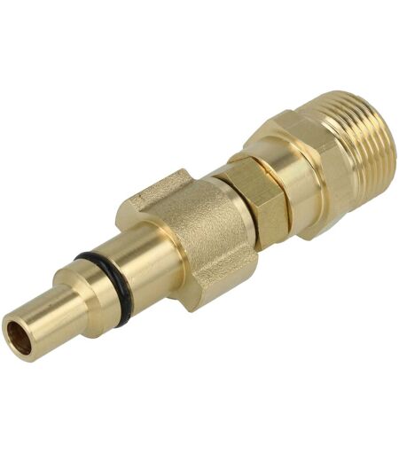 vhbw - the clever way Adaptateur de haute qualité pour votre nettoyeur haute pression Cet adaptateur de la marque vhbw vous permet de connecter un pistolet haute pression avec à un nettoyeur haute pression avec filetage M22. CONTENU DE LIVRAISON : - 1x adaptateur baïonnette DONNÉES TECHNIQUES : - Connexions : M22 filetage extérieur M22, baïonnette compatible avec Parkside Click - Pression max. : 160 bar - Température max : 60°C - Débit max. : 30 l/min - Longueur : 8,5 cm - Diamètre intérieur : 0,92 cm - Diamètre extérieur : 1,83cm - Matériau : laiton / caoutchouc - Couleur : or - Poids : 110 g COMPATIBLE AVEC Lavor Wave 130 Steam vhbw - Accessoires et pièces de rechange de haute qualité pour prolonger la durée de vie de vos appareils électriques. ...