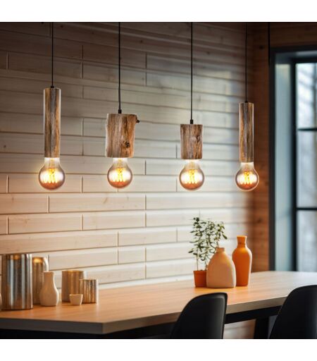 NOWA Lampe suspension bois suspension vintage plafonnier cuisine, métal eucalyptus noir, 4 lumières, h 150 cm, salle à manger salon