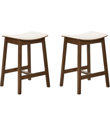 BELIANI Lot de 2 Tabourets de Bar Assise Tapissée Bois Marron Foncé et Blanc Cassé Dixon