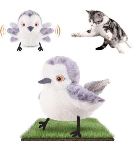 Jouet Pour Chats Oiseau Battant,Gazouillis De Bécassine Plus Vrai Que Nature,Jouet Activé Par Le Toucher Pour Chats,Électrique Interactif Pour Chaton,Avec Herbe À Chat,Rechargeable