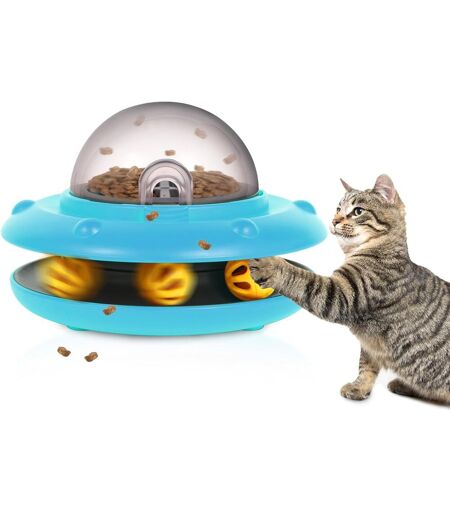 Ufo Automatique Chat Slow Feed Interactive Puzzle Toy 50g/1.76oz Distributeur De Nourriture Pour Chat Avec Batterie Rechargeable Intégrée Pour Petit Chien De Compagnie Intérieur Dry Goods(Bleu)