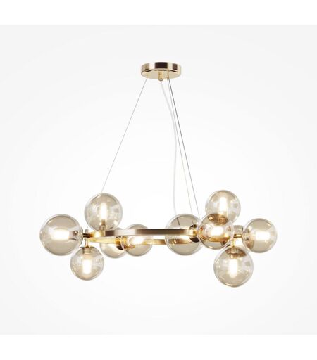 Maytoni Dallas Plafonnier suspendu moderne 1 globe doré, abat-jour cognac, G9 Finition : Or Matériel : Métal Indice de protection : IP20 Hauteur : 137 cm Hauteur maximale : 137 cm Largeur : 25 cm Diamètre : 67 cm Type de lampe : G9 Non. de Lampes: 11 Poids : 3,78 kg Puissance (max): 28W ...