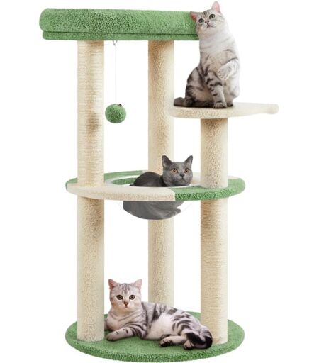 Yaheetech Arbre à Chat Design Océan Tour pour Chat Chaton avec Perchoir Poisson Niche Griffoirs Poteaux en Sisal Panier Ronde Transparent Balle