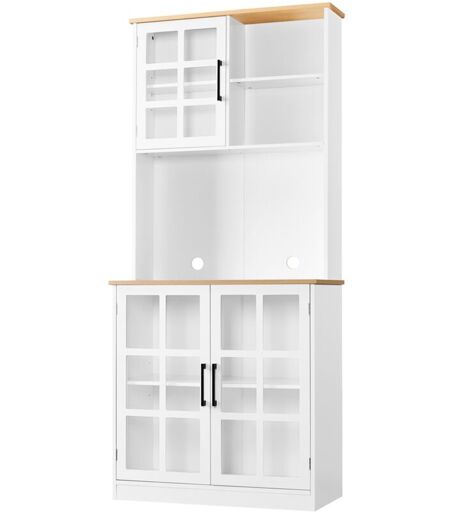 YAHEETECH Buffet Haut de Cuisine Vaisselier Cuisine Armoire de Cuisine Meuble Salle à Manger avec Portes en Verre avec Étagère Réglable 80 × 37 × 183 cm Blanc