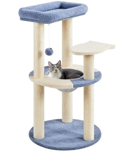 Yaheetech - Arbre à Chat Design Océan Tour pour Chat Chaton avec Perchoir Poisson Niche Griffoirs Poteaux en Sisal Panier Ronde Transparent Balle