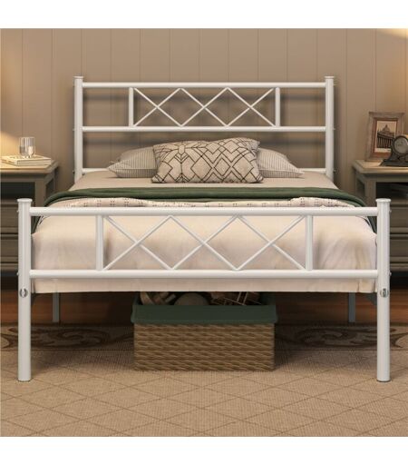 Yaheetech - Cadre de lit Simple Lit en Métal pour Adultes Grande Espace en Lattes Moderne 90x190 cm Blanc