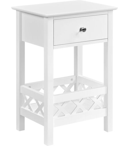 YAHEETECH Table de Chevet Blanc, Table de Nuit en Bois, 1 Tiroir et 1 Étagère avec Clôture Croisé, 40 x 30 x 60 cm, Table d'Appoint Salon Entrée Chambre
