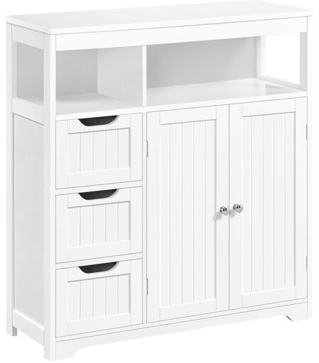 Yaheetech - Meuble Armoire Salle de Bain Rangement, avec 3 Tiroirs, Placard avec 2 Portes et Compartiments, Plateau Réglable en Hauteur, Entrée Salon