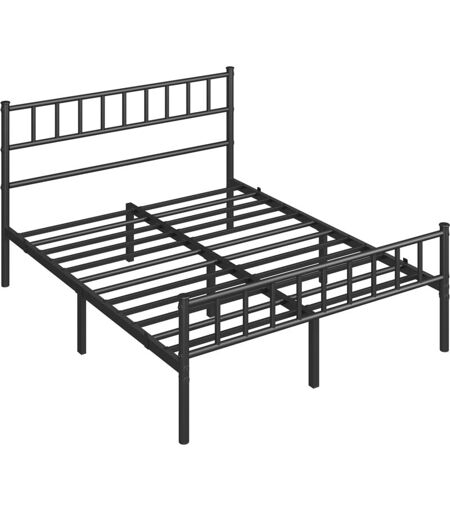 Yaheetech - Cadre de lit Noir Lit Double en Métal pour Adultes Grande Espace en Lattes 160x200 cm