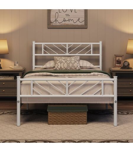 Yaheetech - Cadre de lit Simple 90x200 cm Lit en Métal pour Adultes Grande Espace en Lattes Moderne Blanc