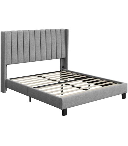 Yaheetech - Lit Double Rembourré 160x200 cm avec Sommier à Lattes, Cadre de Lits Moderne pour Adultes 2 Personnes, Tête de Lit à Rayures en Bois et