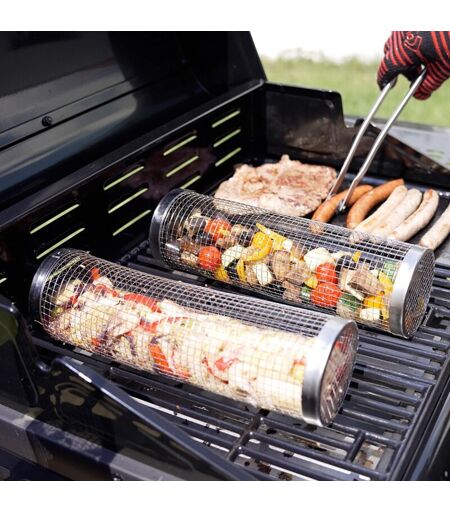 Selection- Paniers cylindriques de cuisson pour barbecue -Grillades à 360°-Lot de 2 grilles 30cm en acier inoxydable - Durandal