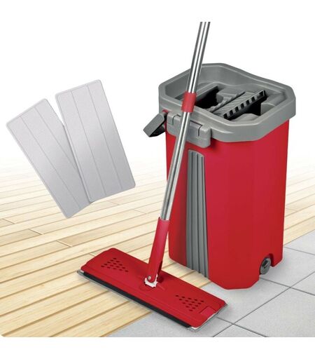 LISERÉ VERT Balai serpillère plat raclette intégrée et seau essoreur Smart Mop Compact 360° - 2 lingettes microfibre réutilisables incluses