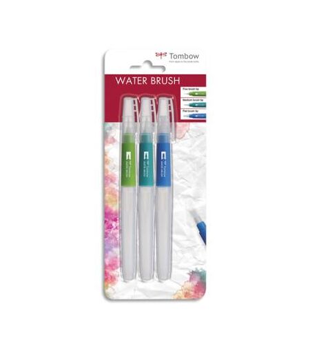 Blister de 3 pinceaux à réservoir d'eau (vide) Tombow - 3 tailles de pointes , fine, moyenne et plate