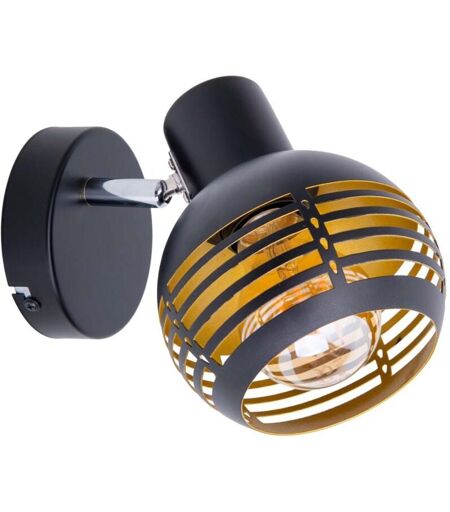 Détails • Type de produit : Spot • Matériau : métal • Couleur : noir-or • Classe de protection : IP20 • Mode de fonctionnement : Fonctionnement sur secteur • Tension secteur : 220-240V~ 50Hz • Culot : E27 • Nombre d'ampoules : 1 • Puissance max. : 40W • Puissance max. par ampoule : 40W • Finition de surface du cadre : mat • Finition de surface de l'abat-jour : mat • Dimensions LxLxH : 23 cm x 12 cm x 14 cm ...