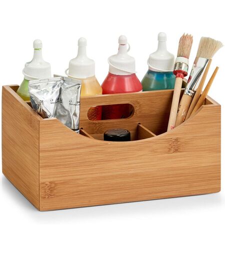 Zeller Récipient en bambou avec poignée, organisateur avec compartiments pour ranger les objets, boîte esthétique.