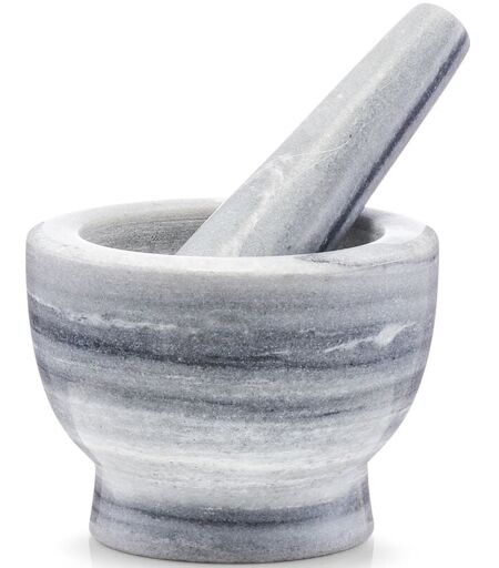 Marbre, mortier de cuisine élégant et pratique avec pilon aidera à déchiqueter et broyer diverses épices ou herbes de cuisine . Il est également idéal pour déchiqueter des parties molles des plantes en pâte et pré-casser des produits durs tels que les graines de tournesol, les graines de citrouille ou la muscade. La surface non polie à l'intérieur du mortier et à la pointe du pilon offre un effet encore meilleur et plus rapide. Caractéristiques du produit : produit en marbre naturel, pratique et utile dans n'importe quelle cuisine vous permet de préparer des saisons fraîches, l' intérieur terni et la pointe du pilon facilite le frottement, Produit de la marque allemande ZELLER. ...