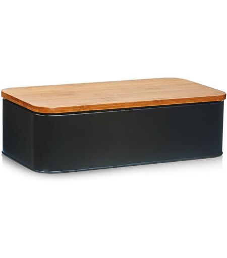 Zeller - Pain en métal avec planche à découper en bambou, noir, 2in1