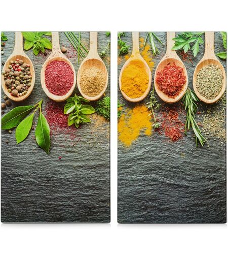 L' ensemble de deux plaques de protection en verre de Zeller fonctionnera parfaitement dans n'importe quelle cuisine, effectuant à la fois des fonctions pratiques et décoratives. Voulez-vous transformer un peu l'intérieur de votre cuisine ? Choisissez un ensemble de plaques Zeller qui sera une décoration inhabituelle pour votre intérieur, et protégera également les comptoirs et la surface du poêle contre les rayures accidentelles, la saleté et d'autres dommages indésirables. Les graphiques décoratifs de cuillères en bois avec des épices et des herbes fraîches plairont sûrement à tous les amateurs de cuisine dans la cuisine de la maison. La plaque a été faite de verre résistant à la chaleur de haute qualité, nous pouvons y mettre même des pots chauds, des casseroles et de la tôle, et le comptoir de cuisine ne succombera pas à la destruction. Le produit est dédié aux cuisinières à induction et peut servir de comptoir supplémentaire. Grâce à sa surface facile d'entretien et extrêmement ...
