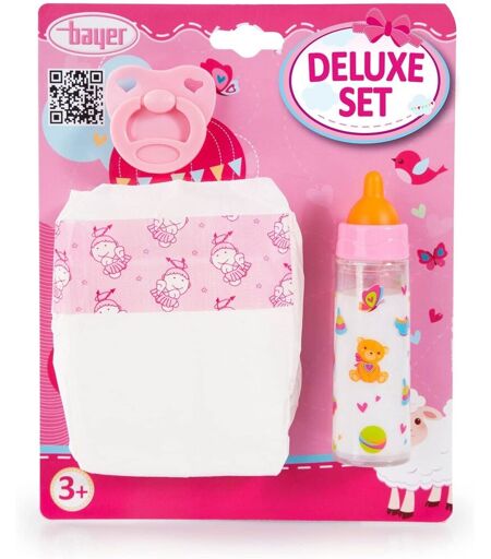 Bayer Design 79201AF Set d'accessoires de luxe pour poupées - - Les petites mamans et les petits papas de poupées sont parfaitement équipés avec ce set. Avec le biberon de lait, la tétine et la couche, ils sont bien équipés pour faire face à toutes les situations. - - - Avec biberon de lait, tétine et couche - À partir de 3 ans ...